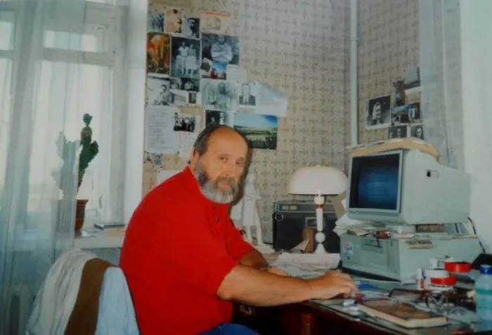 26. Олимпийский чемпион, тяжелоатлет Юрий Власов возле своего компьютера. Москва, 1990-е годы.