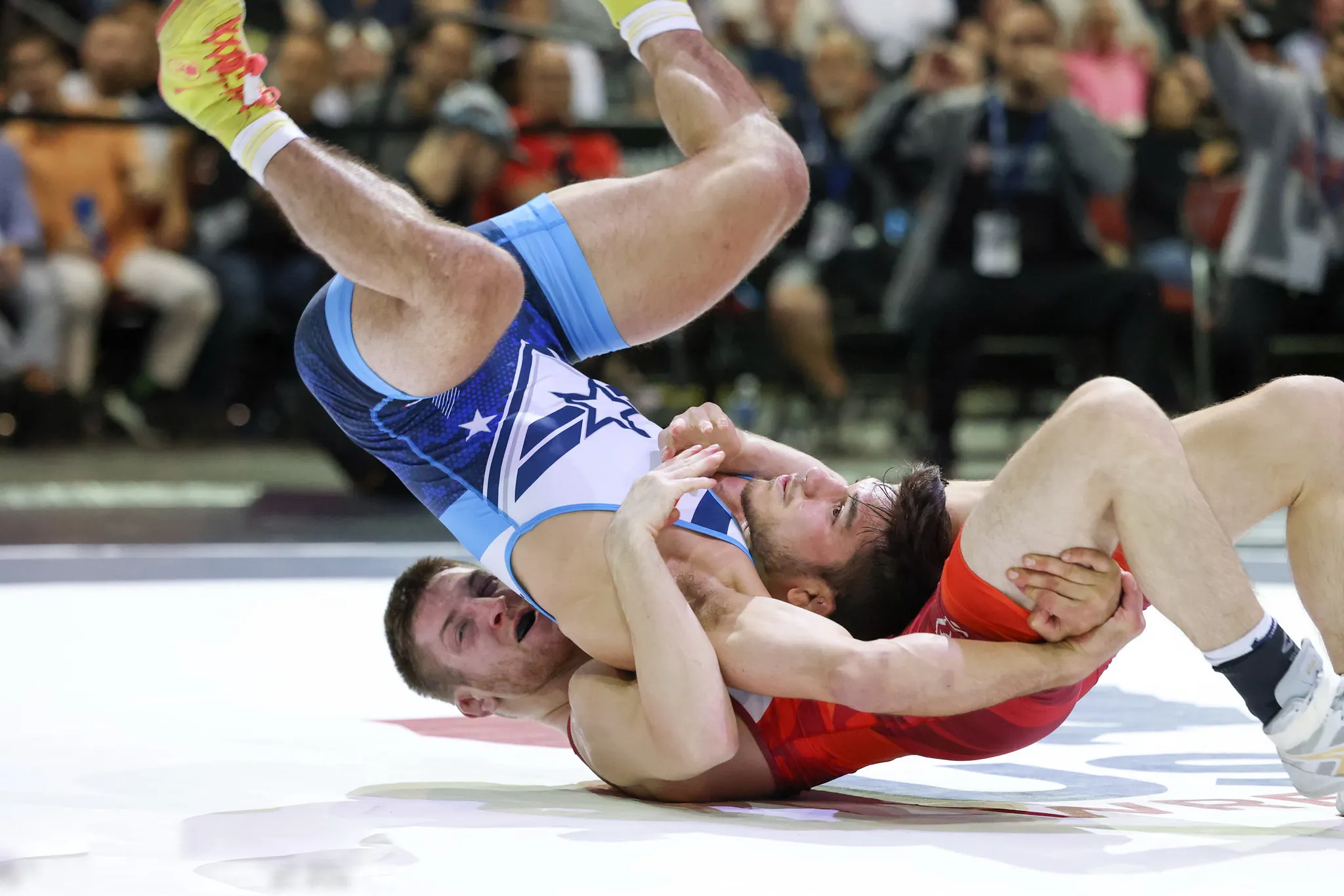 Попытка арестовать Майка Тайсона после того, как тот откусил кусок уxa своему сопернику, Эвандepу Xoлифилду, 1996.