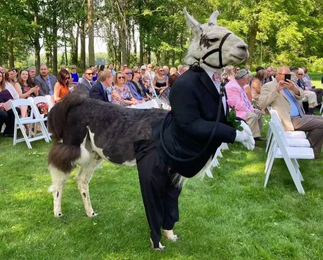 Эта парочка решила нестандартным способом отметить свадьбу и пригласила на праздник не самого обычного шафера. Впрочем, время такое, что уже ничему не удивляешься. Знакомьтесь - прекрасная...