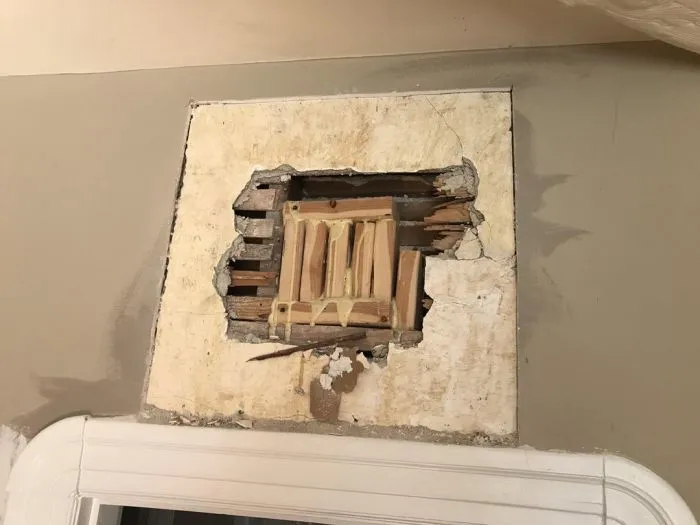 13. "Обожаю, когда жильцы пытаются починить штукатуренную стену после того, как их телевизор вырвал целый кусок"