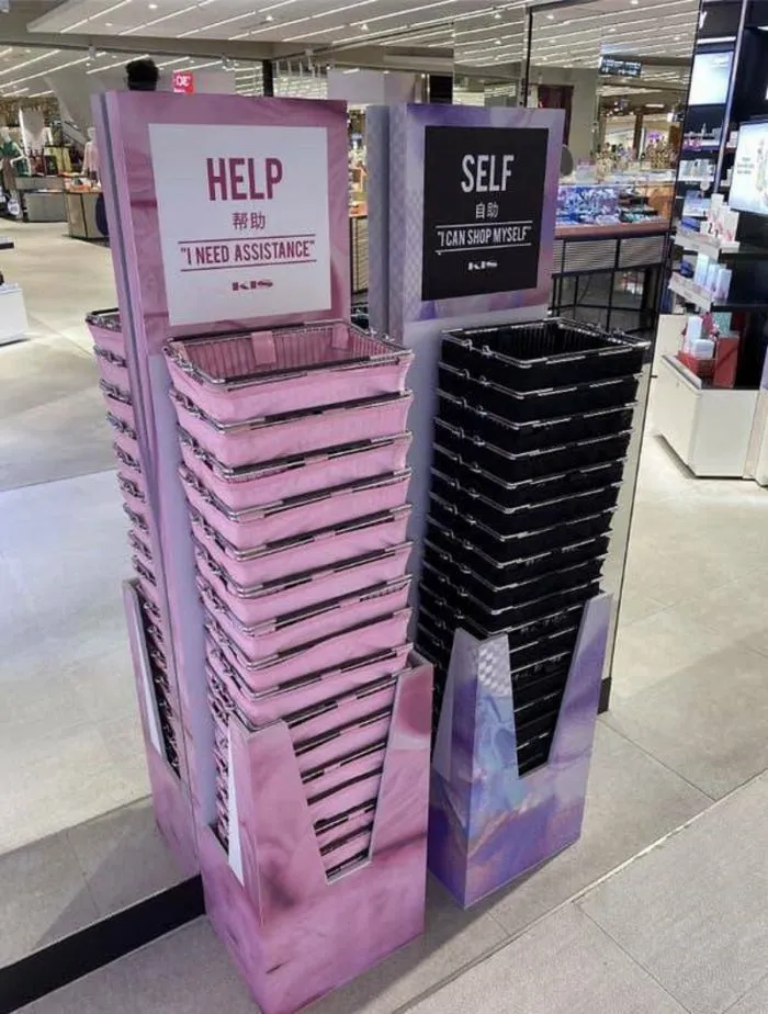 12. В Японии вы можете выбрать цвет корзинки в зависимости от того, нужна ли вам помощь консультанта или нет