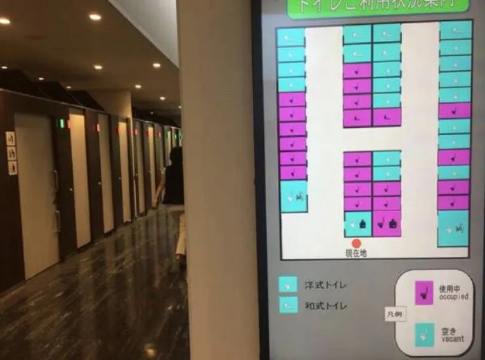 34. В Японии можно не искать свободную кабинку - вся информация есть на экране при входе