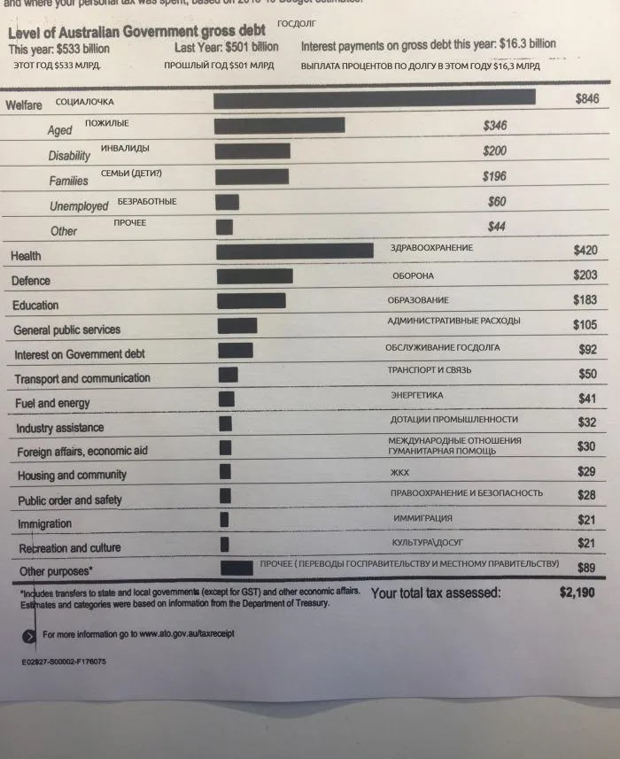 42. Выписка с подробным описанием того, куда ушли деньги австралийского налогоплательщика