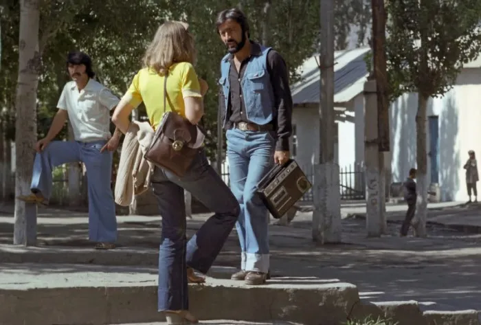Местные жители на одной из улиц города Хорог Горно-Бадахшанской автономной области, ТаджССР, 1982 г.