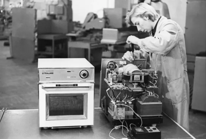 Электронная печь «Страуме», служит для размораживания продуктов и для быстрого приготовления пищи. Рижский завод «Страуме» электробытовых приборов и детских игрушек. 1979 г.