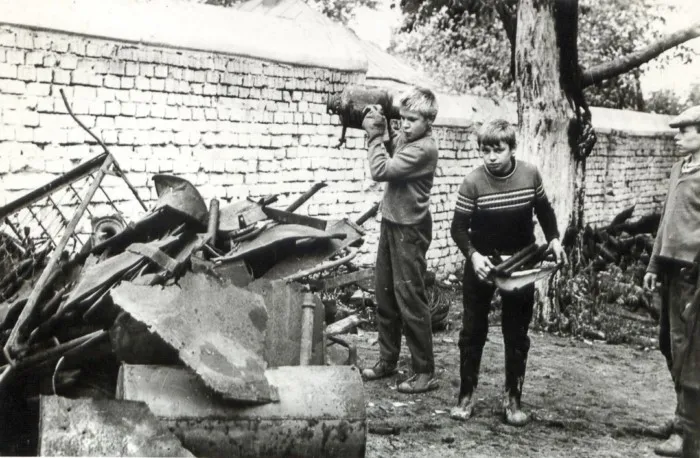 Пионеры на сборе металлолома г. Елец. Как положено, в трикушках, чтобы форму не зафоршмачить!