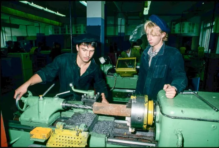Студенты с преподавателем СПТУ-84 в кабинете-лаборатории.