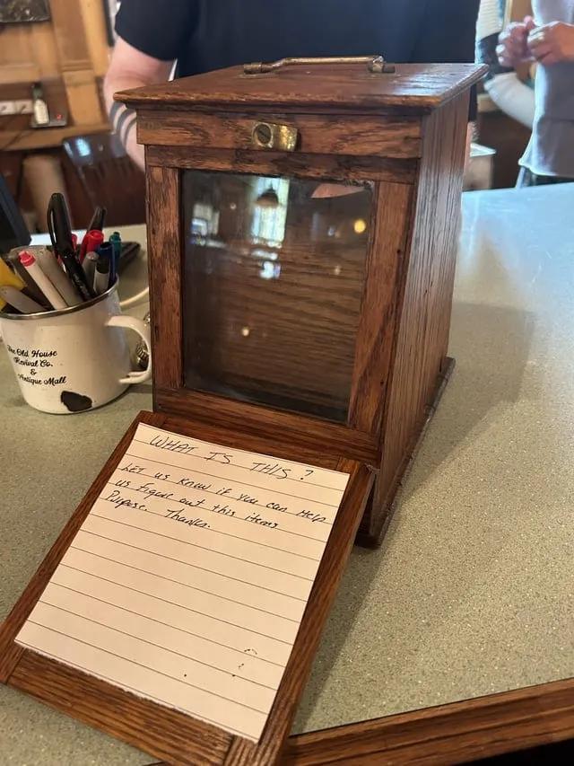 Деревянный ящик со стеклянным окном. Имеет деревянную заслонку на шарнире, закрывающую стекло