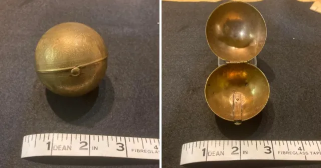 Сферическая шкатулка из бронзы или латуни диаметром 5 сантиметров. Очень лёгкая. Для чего она?