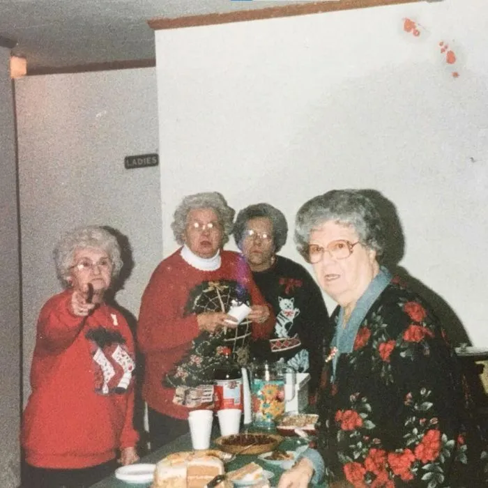 Эту фотографию Кайсе Каер подарила ее бабушка Аино - девушка справа во втором ряду, которая прикуривает сигарету. "В момент съемки ей было около 15 лет, а это ее подруги, - объясняет Кайса. - У меня нет более конкретной информации о том, кто они такие. Они занимались в любительском театре. Моя бабушка никогда не курила, но у нее было искрометное чувство юмора".Кайса рассказала, что ее бабушка вышла замуж за аптекаря Николая. Во время Второй мировой войны они жили и работали в небольшом городке в Эстонии, и немецкий офицер, который жил в их доме, хорошо к ним относился и даже предлагал им уехать к его семье в Германию (куда-то под Франкфурт), чтобы укрыться от войны. "Дедушка и бабушка отказались, и вот, - добавила она, - дедушку депортировали в Сибирь, его освободили при Хрущеве. Он вернулся домой, но умер через четыре года, так как здоровье его было подорвано"."Самое яркое воспоминание о бабушке - это когда мы приезжаем к ней в гости с родителями и братом, сидим за кухонным столом и часами играем в маджонг, игральные кости для которого сделал дедушка". Аино скончалась в 2009 году.