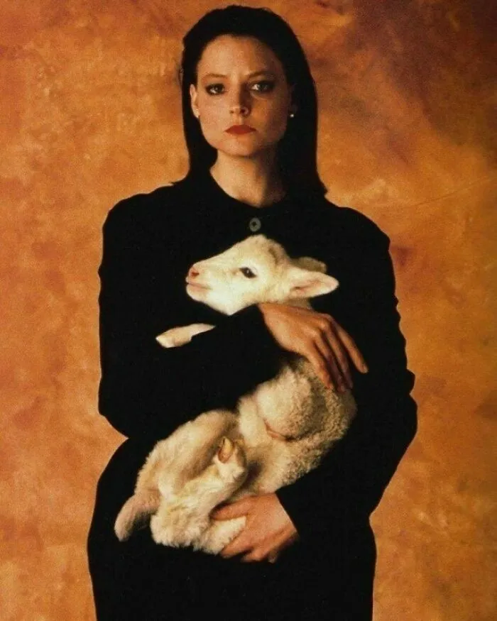 25. Джоди Фостер держит ягненка на промо-съемке для фильма "Молчание ягнят", 1991 год