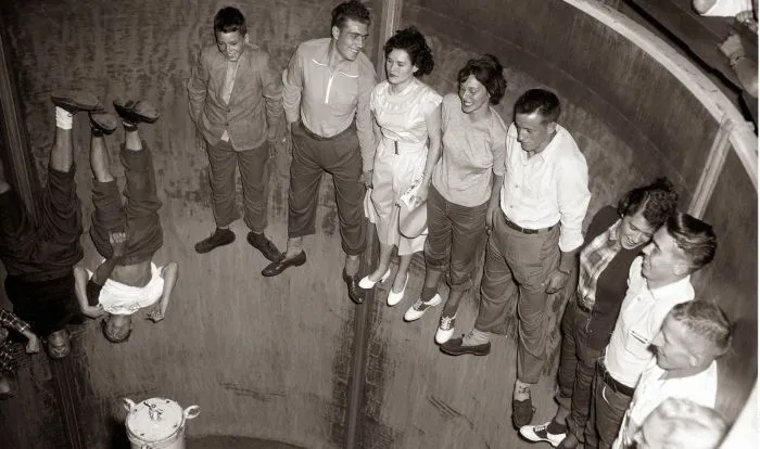 Аттракцион спроектировал немецкий инженер Эрнст Хоффмайстер в 1948 году и представил его на Октоберфесте в Германии год спустя. Вращение бочки создавало центробежный эффект. Дно уходило из-под ног, и людей прижимало к стенкам. В конце сеанса бочка замедлялась, и гравитация возвращалась. О безопасности тогда не задумывались.