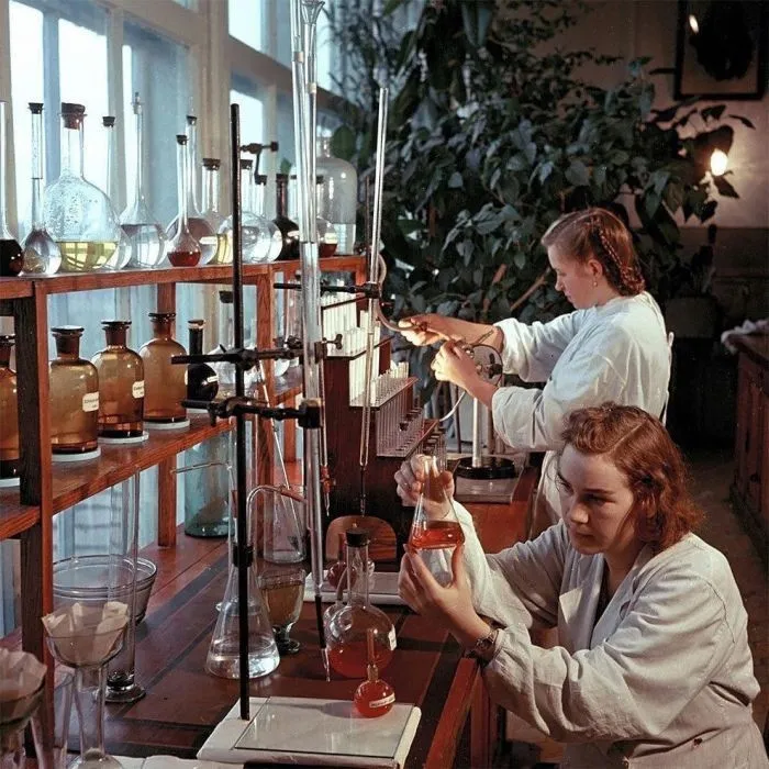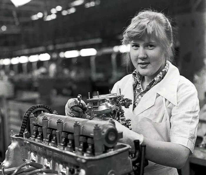 6. Советская девушка на заводе собираем двигатель Жигулей