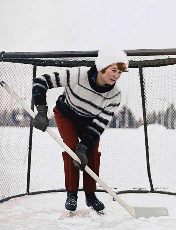 11. Валентина Терешкова играет в хоккей. Звёздный городок. Московская область. СССР. 1963 год