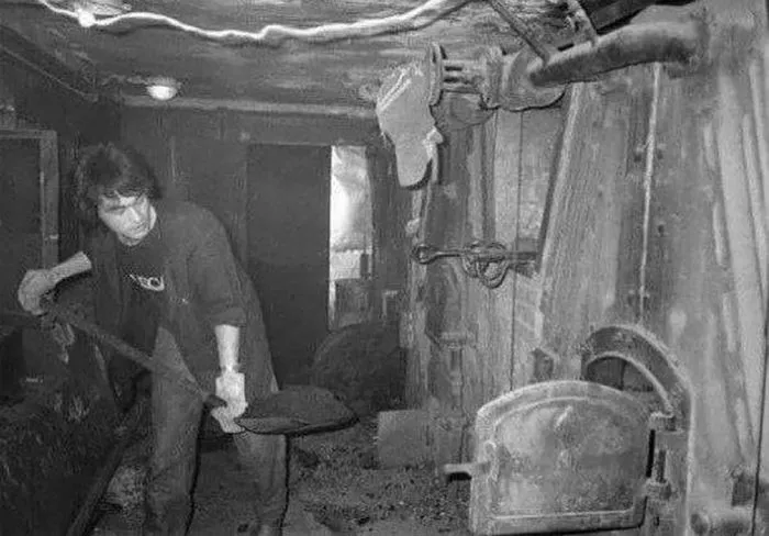 20. Виктор Цой за работой в котельной на улице Блохина, д.15 в Санкт-Петербурге. Цой работал в ней в должности кочегара с осени 1986 по 1988 год