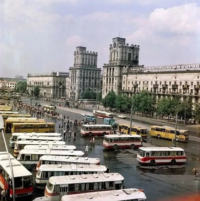 27. Автобусы на площади Жезнодорожной Станции в Минске, 1983 год