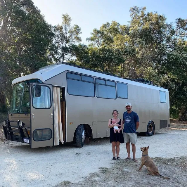 Семья живет совершенно автономно в 11,5-метровом автобусе в Эксмуте, Западная Австралия, и ездит вверх и вниз по побережью.
