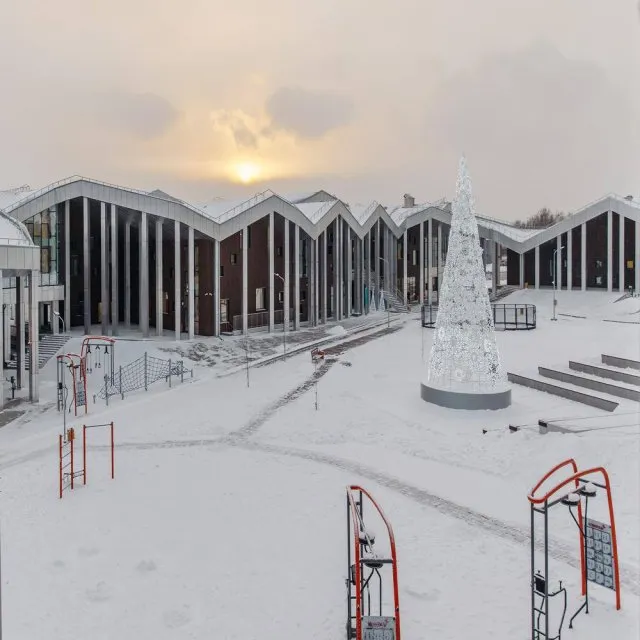 "Точка будущего" в Иркутске. В нее входит сама школа, а также детский сад, объекты для занятий спортом, Центр социальной и психологической поддержки и коттеджный поселок для приемных семей - всего 27 зданий. На ее строительство миллиардер Альберт Авдолян потратил 6 млрд. рублей.