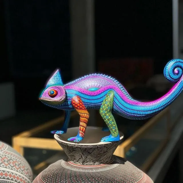 Хамелеон, вырезанный из дерева и расписанный вручную