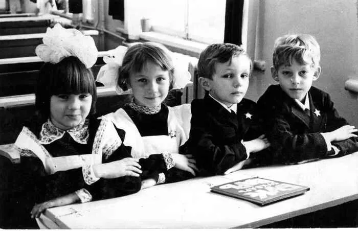Вспоминается обязательная для всех школьная форма, она была просто неубиваемая) и могла передаваться от брата к брату, от сестры к сестре)