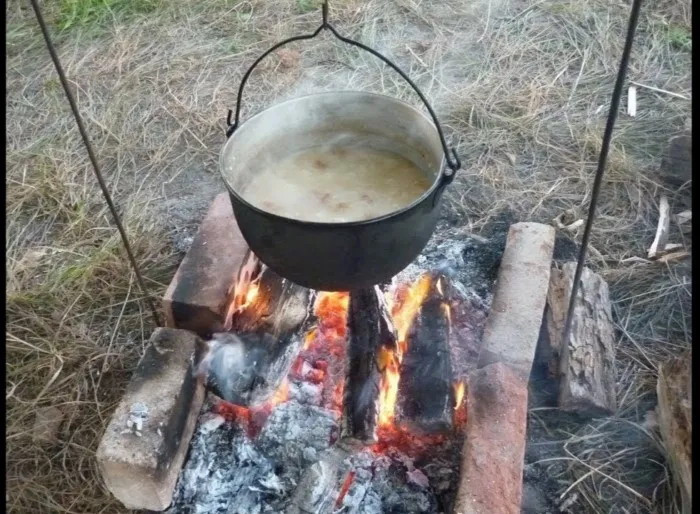 Потом каждый класс выбирал удобное местечко и мы все вместе пекли картошку, варили кулеш.