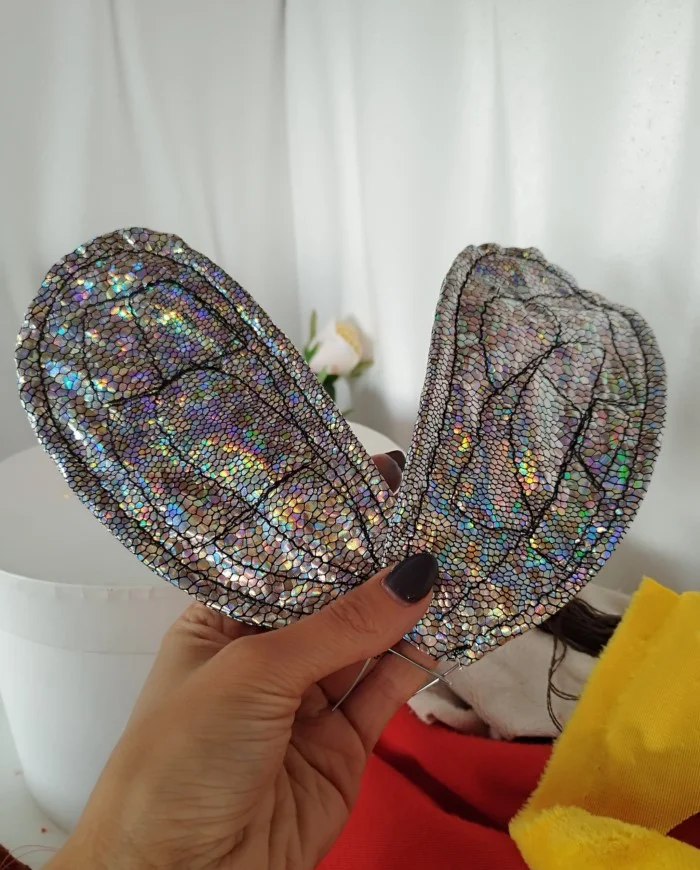 Жало и крылья шила из такого красивого трикотажа, в крылья по краю вставила проволоку чтобы держали форму.