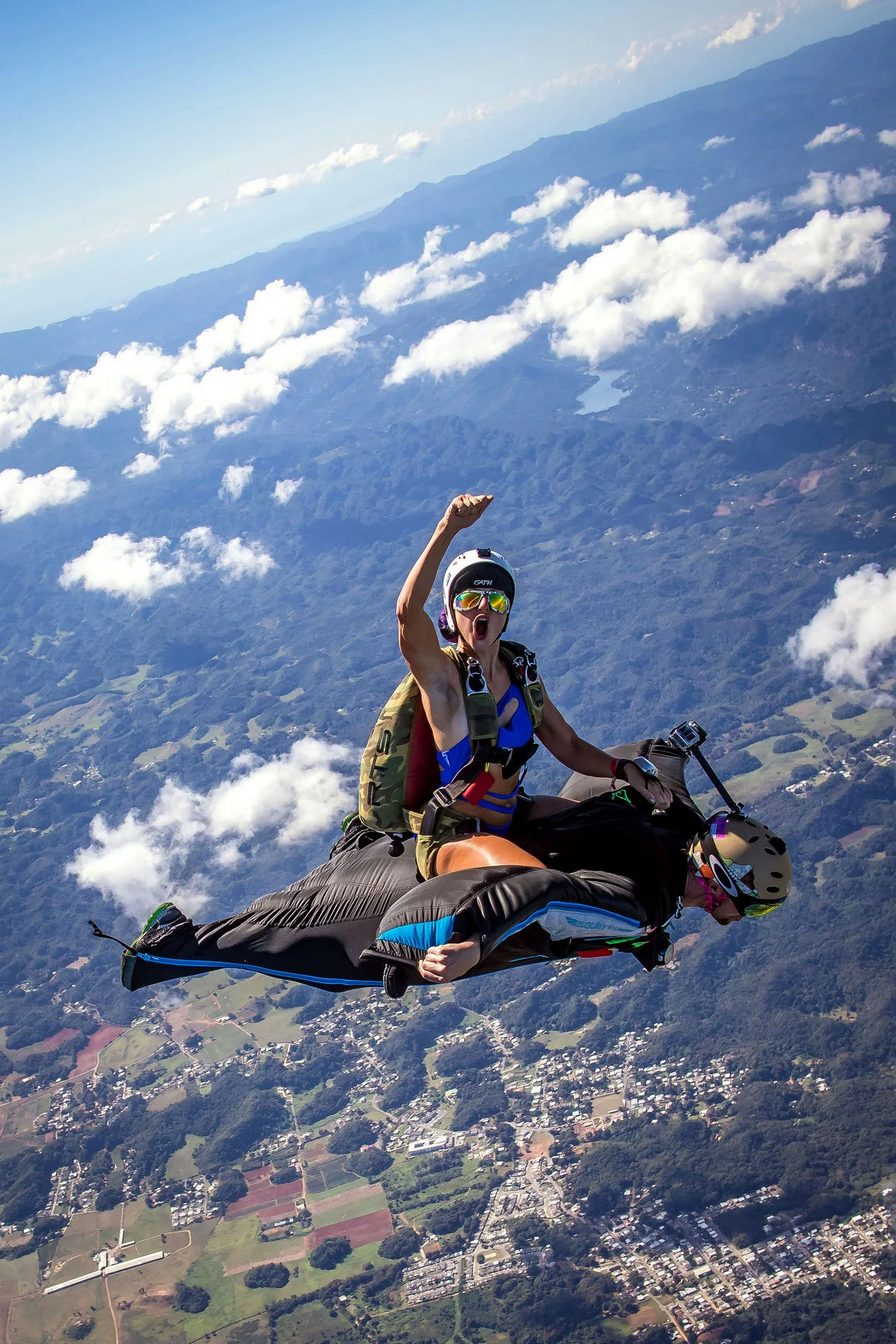 Прыжок на мотоцикле над летящим