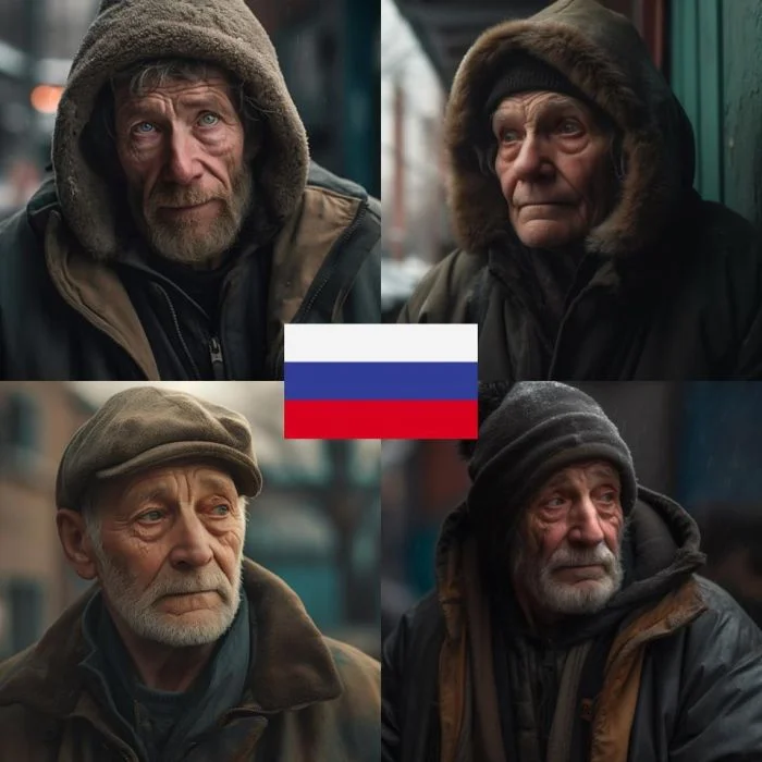 Нейросеть сгенерировала изображения людей, у которых не сложилась жизнь. Характерные черты: пожилой возраст, понурый вид, морщины, мешковая одежда. Давайте посмотрим, ведь мы сталкиваемся с такими людьми в обычной жизни. Достоверно ли передала всё нейросеть?