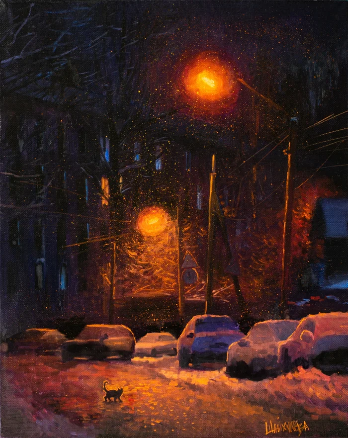 Живопись Альфии Шайхуловой: Зимние дворы пятиэтажек
