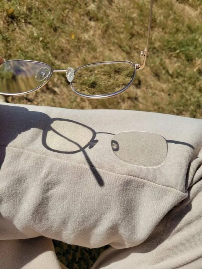 7. "У меня антиметропия - состояние, при котором рефракция в обоих глазах имеет противоположный знак (плюс и минус). Вот тени от моих очков"