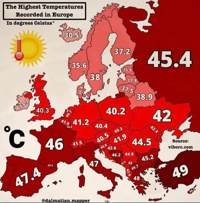 26. Самая высокая температура, зарегистрированная в странах Европы