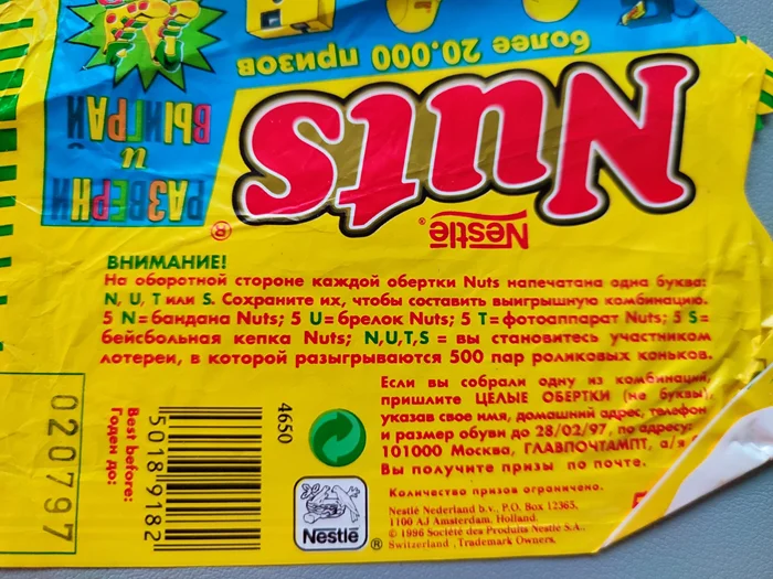 Далее батончик из 90-х, да еще и с розыгрышем призов. Я отправлял полностью все буквы, но ничего так и не выиграл