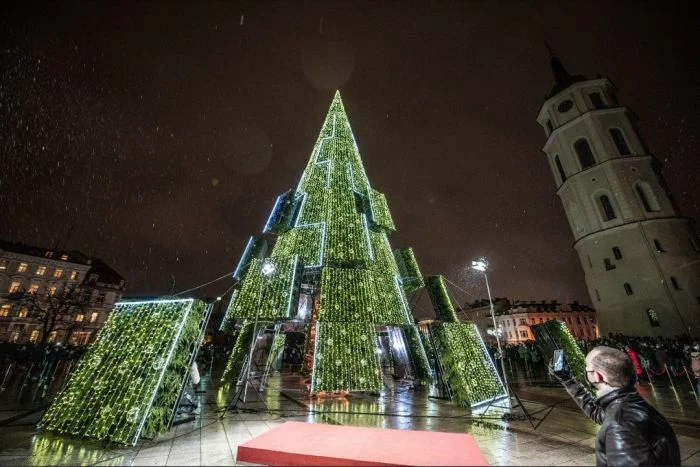 Каждый год в Вильнюсе зажигают удивительные рождественские ёлки в самом центре города, Литва