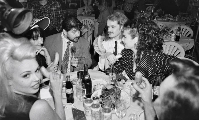14. Довольный «Ленин» в окружении дам в ночном клубе Москвы, 1992 год