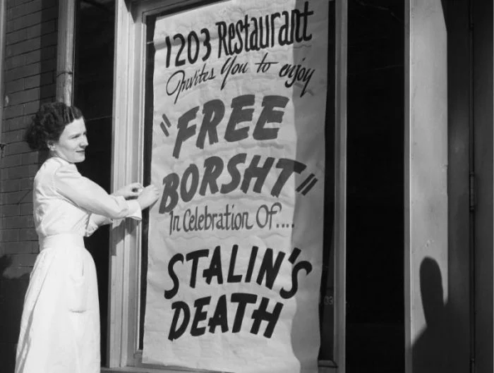 Хозяйка этого ресторана предлагает бесплатный борщ в честь смерти Сталина, Вашингтон, 1953 год.