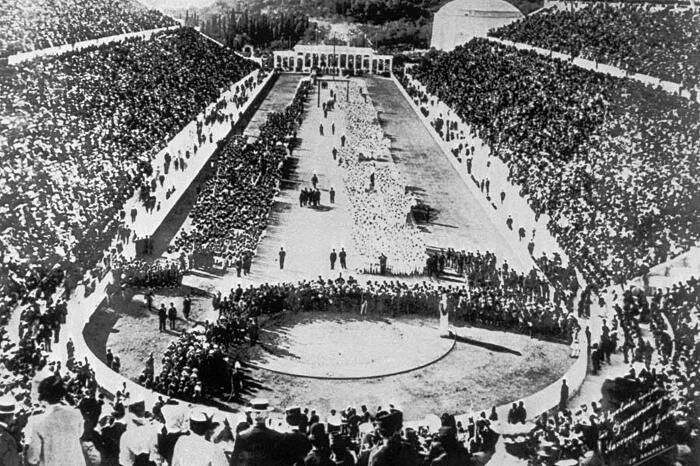 Церемония открытия первых современных Олимпийских игр в Афинах, Греция, 6 апреля 1896 года.
