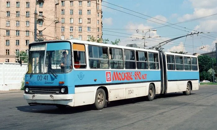 15. Лиаз-677 в раскраске. В 1997 году этих автобусов на маршрутах было довольно много, окончательно они исчезнут с улиц Москвы в 2004 году.
