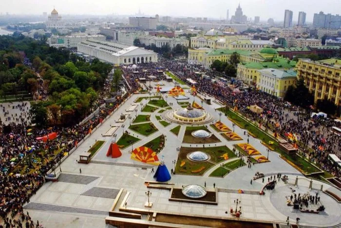 30. Празднование 850-летия Москвы на Манежной площади.