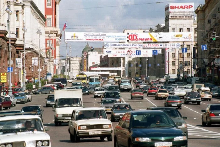 31. 1998 год - это то время, когда Москва начинает полноценно привыкать к пробкам.