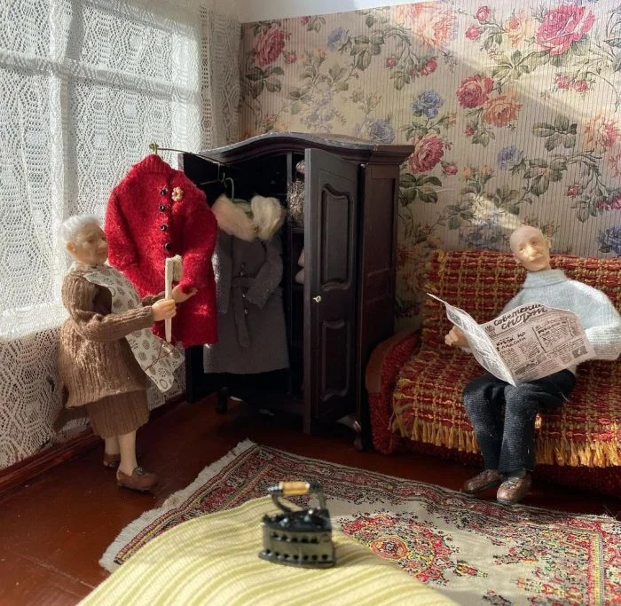 Главные герои зарисовок художницы – пенсионеры. Они живут своей жизнью, доказывая, что пенсия – это ещё не конец. Бабули и дедули едут на дачу за урожаем, поливают цветы, делают заготовки, чистят одежду, идут за грибами, вяжут, болтают, играют с внуками, наслаждаются неспешной беседой за чашкой чая и совместными воспоминаниями.Хрисанова делает как абстрактные домики, игрушки и композиции, так и воссоздаёт миниатюры по фотографиям, помогая людям окунуться в тёплые воспоминания и поностальгировать о светлых моментах жизни.
