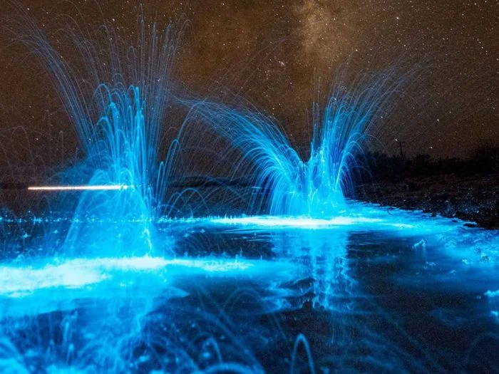 Фитопланктон "Морские искорки" (noctiluca scintillans) устраивают световое шоу в южной Тасмании.