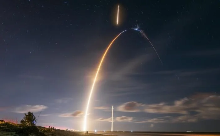 Небо после запуска ракеты в космос может выглядеть вот так - впечатляюще и загадочно.