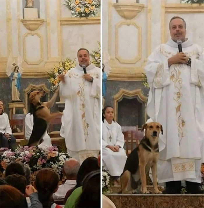 2. Бразильский священник Хуан Пабло забирает с улиц брошенных собак, кормит и купает их. Затем он представляет собаку на мессе и находит ей дом