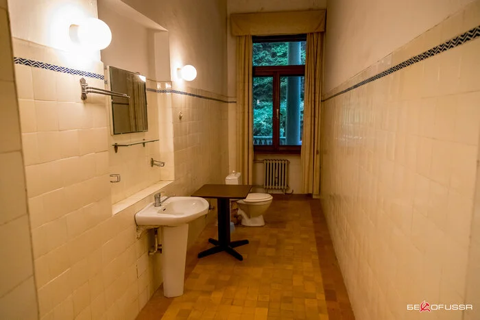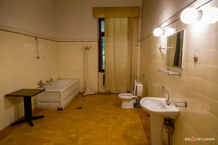 Между спальнями размещен санузел, всего на даче их три, все они достаточно спартански оформлены, часть сантехники уже заменена на современную.
