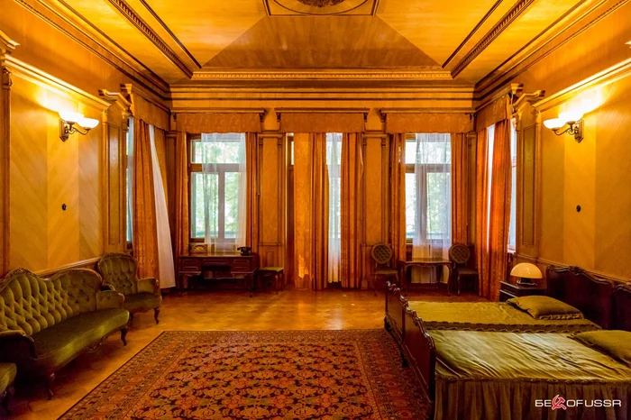 И спальня номер три. Говорят Хозяин часто ложился спать в одной комнате, а ночью переходил в другую. Матрасы были изготовлены с добавлением лечебных трав и водорослей.
