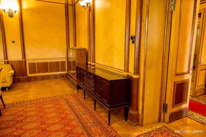 В доме есть гостиная, но я ее пропустил, и столовая в которой Сталин кушал и принимал "гостей". Кухня кстати расположена в другом здании, так как Сталин не любил лишних запахов, еду привозили готовой.