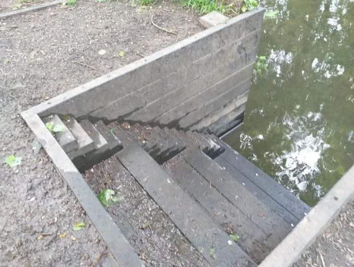10. Лестница к каналу, на которой есть ступеньки для уточек