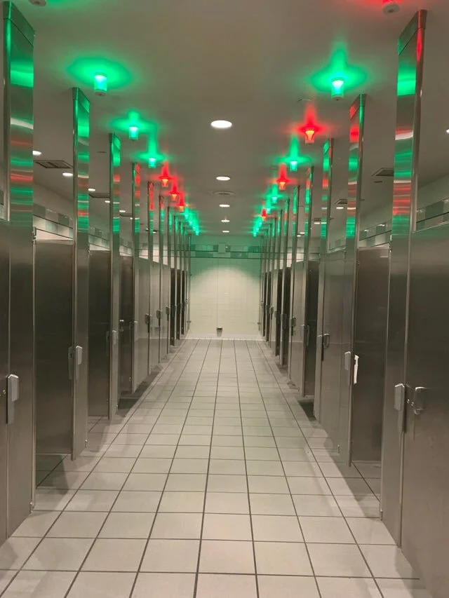 16. Туалет, в котором свободные кабинки видно издалека