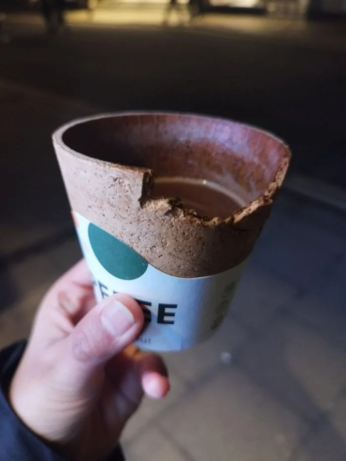 Перед вами горячий шоколад со съедобным вафельным стаканчиком
