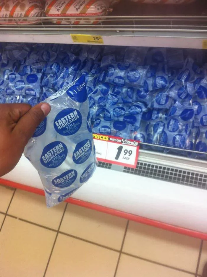 Вода в этом супермаркете продаётся в прозрачной пластиковой упаковке